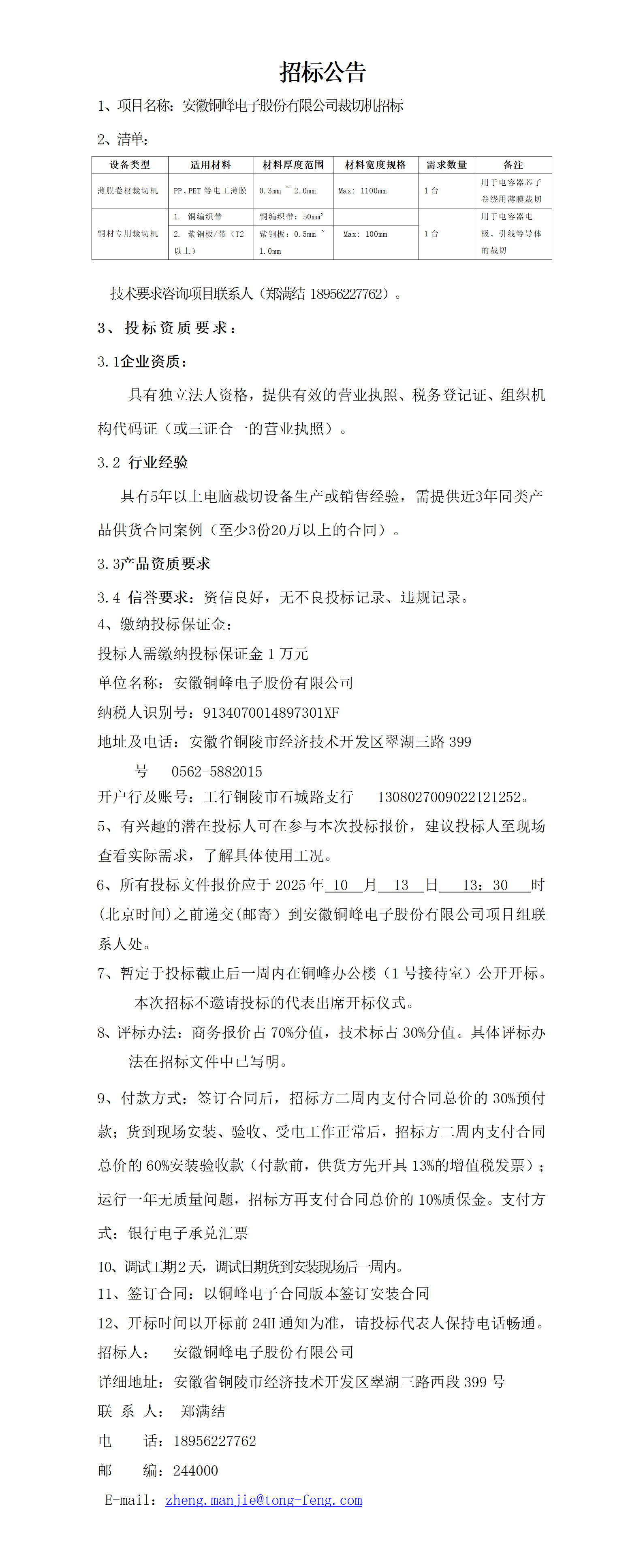 安徽銅峰電子股份有限公司 (安徽銅峰電子股份有限公司景觀綠化工程 招標公告)_01