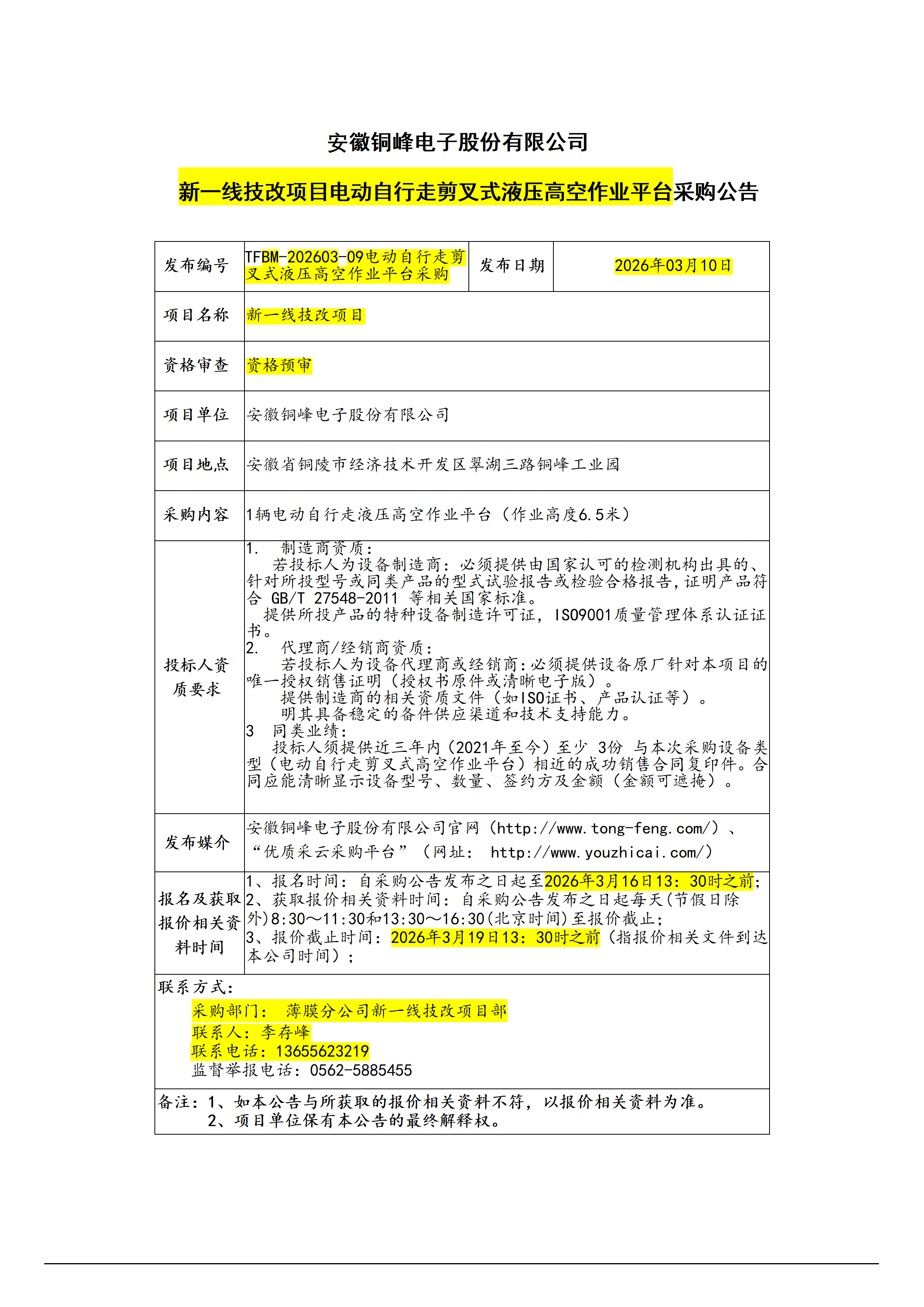 安徽銅峰電子股份有限公司 (新一線電動(dòng)登高車采購(gòu)招標(biāo)公告)_01