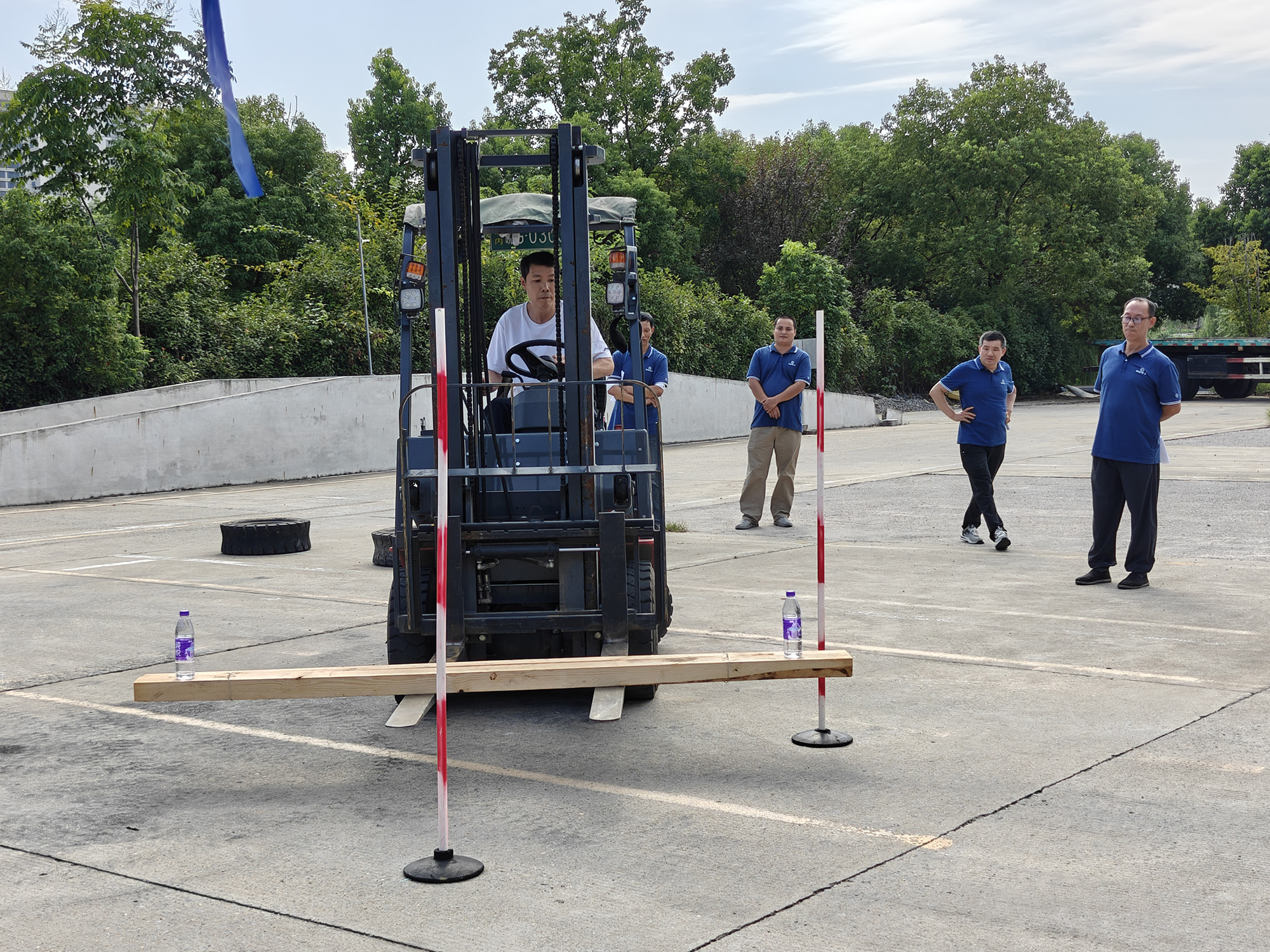 叉車技能比武側(cè)重于選手的操控熟練性與心理素質(zhì)。項(xiàng)目設(shè)置緊密貼合實(shí)際作業(yè)場(chǎng)景,要求選手在限定時(shí)間內(nèi)完成轉(zhuǎn)向往返、托盤(pán)精準(zhǔn)移庫(kù)碼放等動(dòng)作,并在繞障礙物操作過(guò)程中確保托盤(pán)上礦泉水瓶保持穩(wěn)定,不得掉落。競(jìng)賽不僅要求速度,更注重操作的平穩(wěn)性與準(zhǔn)確性,充分體現(xiàn)出高標(biāo)準(zhǔn)的作業(yè)要求。