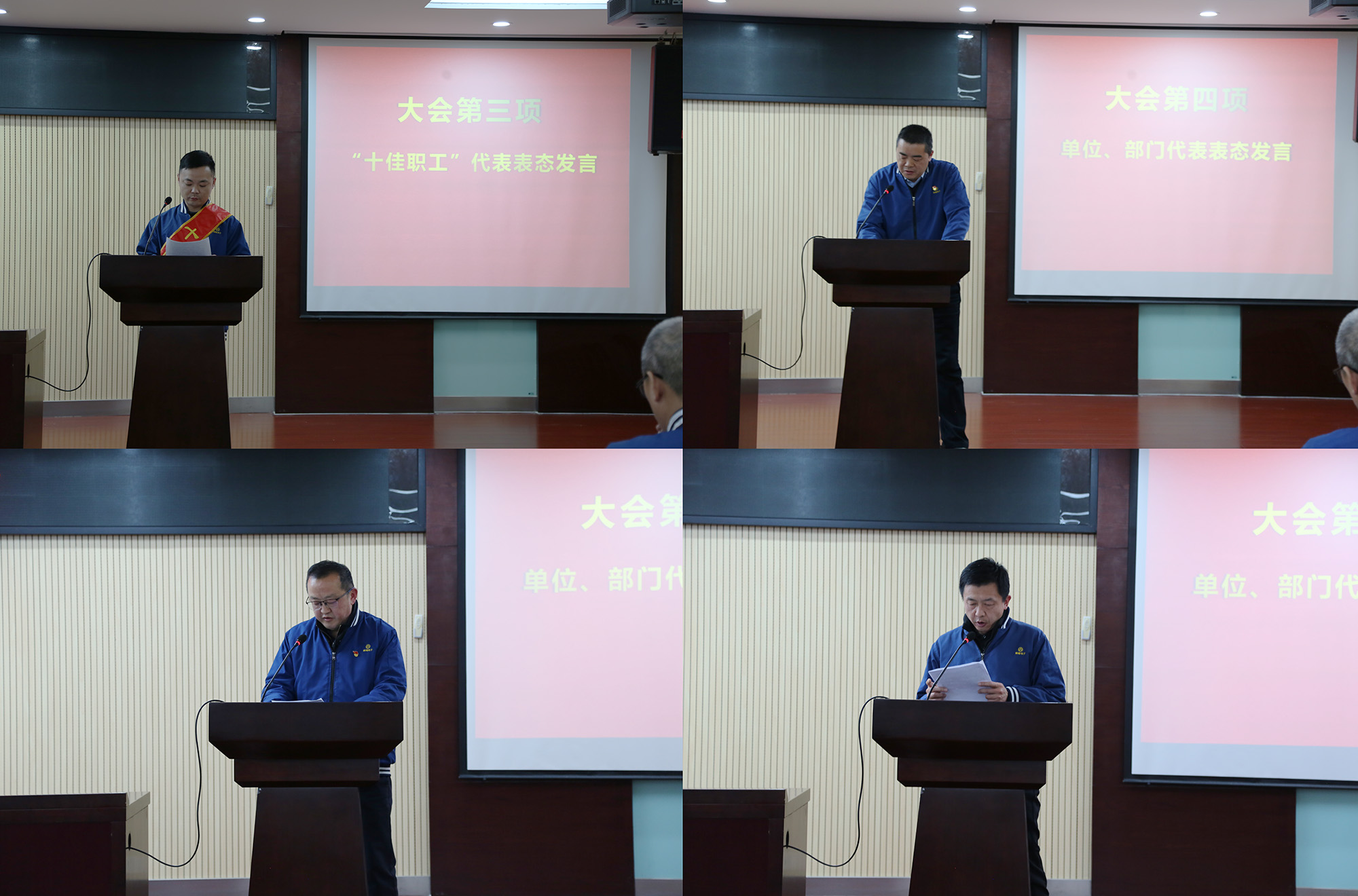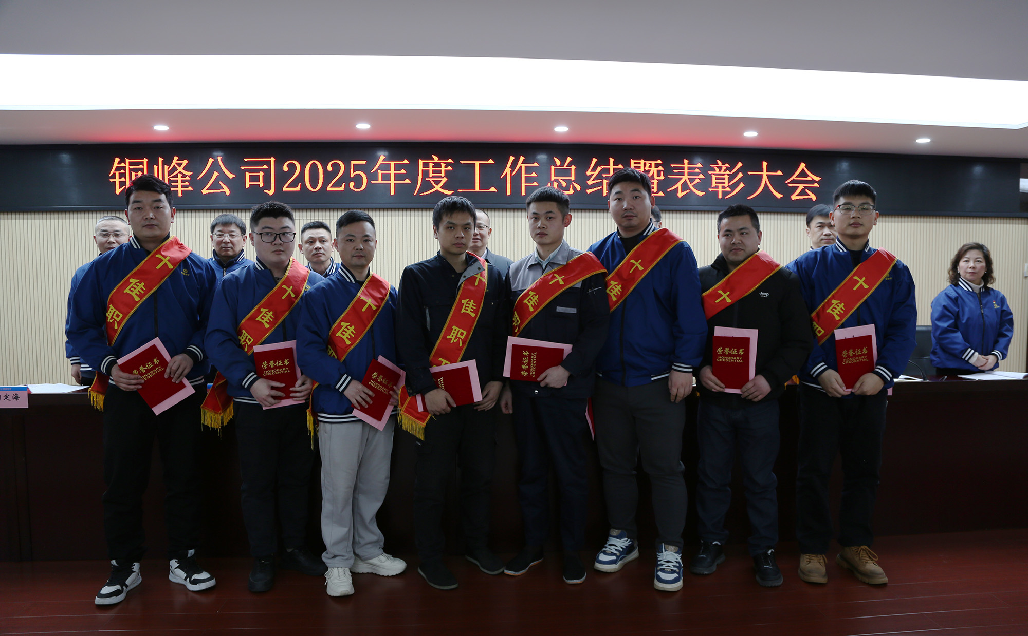 與會(huì)領(lǐng)導(dǎo)為受表彰的2025年度公司“十佳職工”頒發(fā)榮譽(yù)證書及獎(jiǎng)金?!笆崖毠ぁ薄⒔?jīng)營單位和職能部門代表分別作表態(tài)發(fā)言。